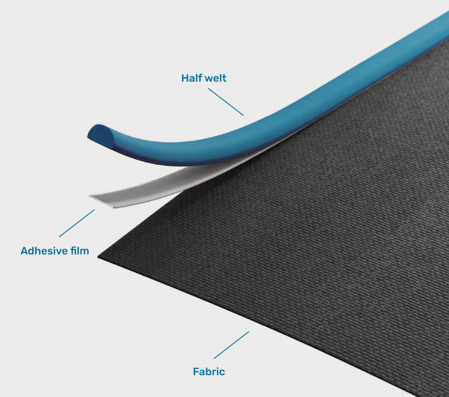 NonVi Eco G se adhiere al material. Este producto es muy similar al NonVi Eco S, que presenta una ranura para unir mediante costura. Ambos presentan unas características muy similares y solo difieren en términos de procesado.