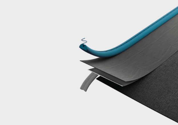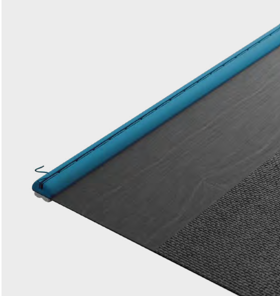 - El sistema NonVi Flex se une directamente al borde del material y se instala completamente en el perfil. De esta forma, se consigue una transición entre la estructura y el material sin unión a la vista. Este efecto da lugar a un mejor resultado estético sin sobras debido a solapar capas de material (dobladillo tradicional).