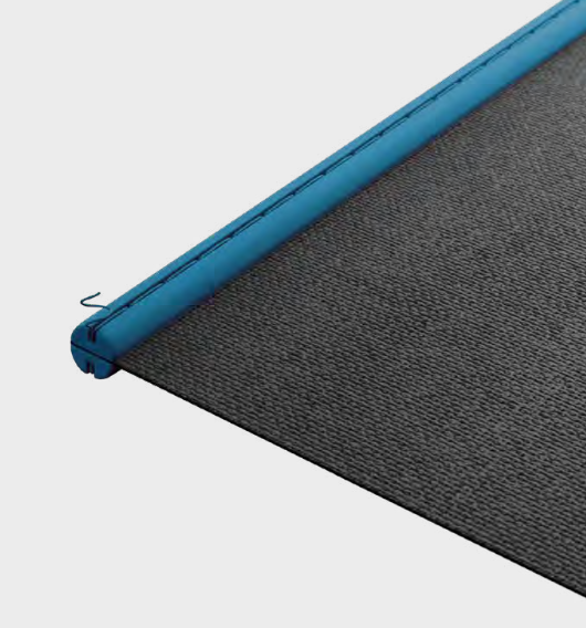 • El macarrón NonVi Twin está unido directamente al borde del material. Al introducirse en el perfil completamente se consigue ocultar completamente la costura, dando lugar a un mejor resultado estético sin sombras debido a la ausencia del dobladillo.