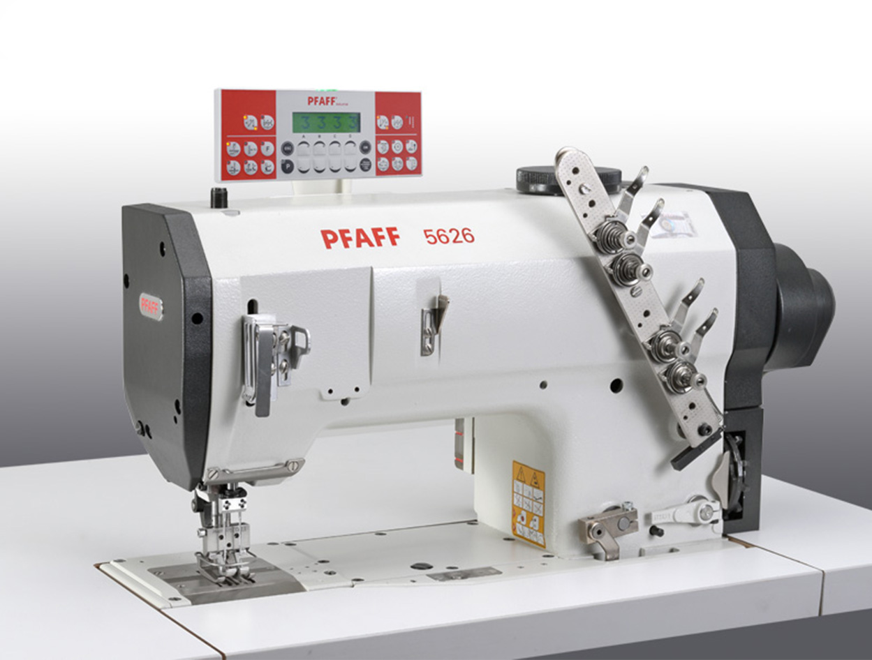 El PFAFF 5626 (tecnología en línea) se dirige a los segmentos de interiores de automóviles y establecerá nuevos estándares para trabajos de puntada superior de dos agujas altamente decorativos. Sin duda, el punto de cadena ofrece ventajas que los fabricantes de interiores de automóviles han reconocido. El 5626 produce un patrón de costura perfecto con puntadas idénticas de la aguja derecha e izquierda. Esto es especialmente importante en las costuras decorativas y muy visibles de los tableros de instrumentos y los paneles de las puertas interiores. La tecnología en línea de la máquina 5626 permite hasta 10 agujas con un calibre máximo de 60 mm.