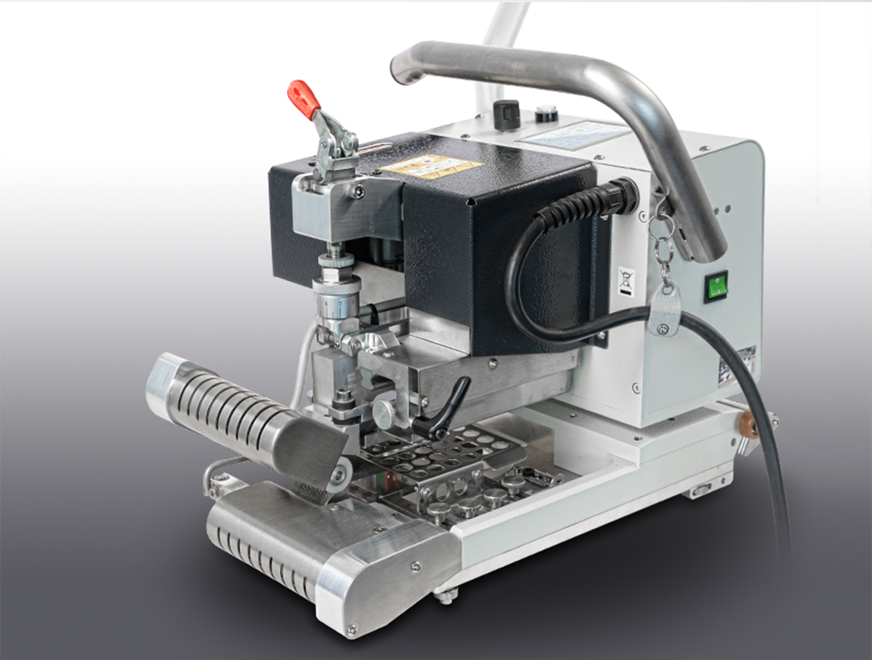 - El movimiento eléctrico de la cuña permite una parada fácil durante la costura: la cuña se mueve fuera del área de soldadura